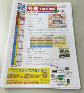 皆さんこんにちは!副教室長です。🐟外の気候も肌寒くなってきて、いよいよ秋本番といったところでしょうか🍁体調管理には十分気を付けたいですね…! さて、赤塚教室内にたくさんの新しいパンフレットがおかれました!「冬期+直前講習 […]