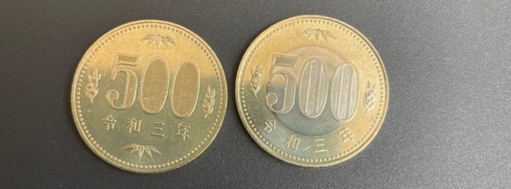 そう、新しい500円玉です!💰こうして比較してみると、かなり差がありますね。「500円」の線がはっきりしましたし、円が二重になって、「令和三年」の文字も横一列ではなくふちに沿って刻印されていますね。1面だけでもこれだけ差があげられるうえに、横がギザギザしていて触るだけで「新しい型だ!」と分かります。この令和三年製の500円玉、2021年の11月~12月しか製造されていないということで、将来的にかなりレアものになるのでは…⁉と思い、家に帰ってすぐ、鍵のついた引き出しにしまいました😂私自身、こんなに早く新500円玉にお会いできると思っていなかったので驚きです。そのうち、こちらが主流になっていくのかと思うと、なんだか不思議な気もしますが、慣れてしまうんだろうなあ…少し寂しい気もします😢でも、出回らないわけではないので、もし今後旧式に出会ったら再会を喜びたいと思います😊
